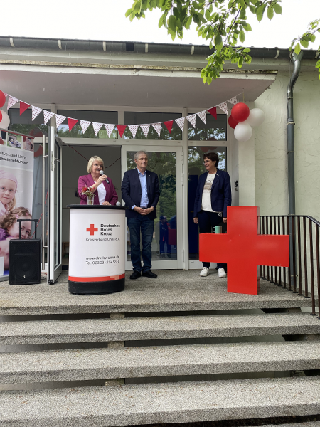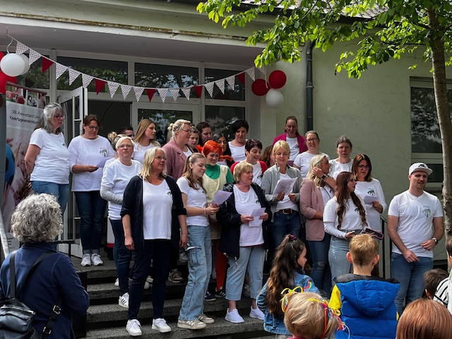 Nach der offiziellen Begrüßung durch den Präsidenten sowie den Vorstand des DRK-Kreisverbandes Unna e.V., Michael Makiolla und Johann Härtling, Einrichtungsleiterin Bettina Wirth und der Bürgermeisterin der Stadt Fröndenberg Sabina Müller, folgten zahlreiche Glückwünsche durch die Gäste. Unter den Gästen befanden sich neben der Sachgebietsleitung Kinderbetreuung der Kreises Unna Christine Anetsberger sowie der Leiterin des Treffpunkts Windmühle Ilka Essers ebenfalls andere DRK-Kitaleiter*innen und ehemaligen Mitarbeitende der Kita Villa Kunterbunt. Schließlich eröffneten das Kita-Team und die Kinder die Feier mit ihrer ganz persönlichen Version des Pippi-Langstrumpf-Liedes, welche sie zuvor im Tonstudio neu aufgenommen haben.