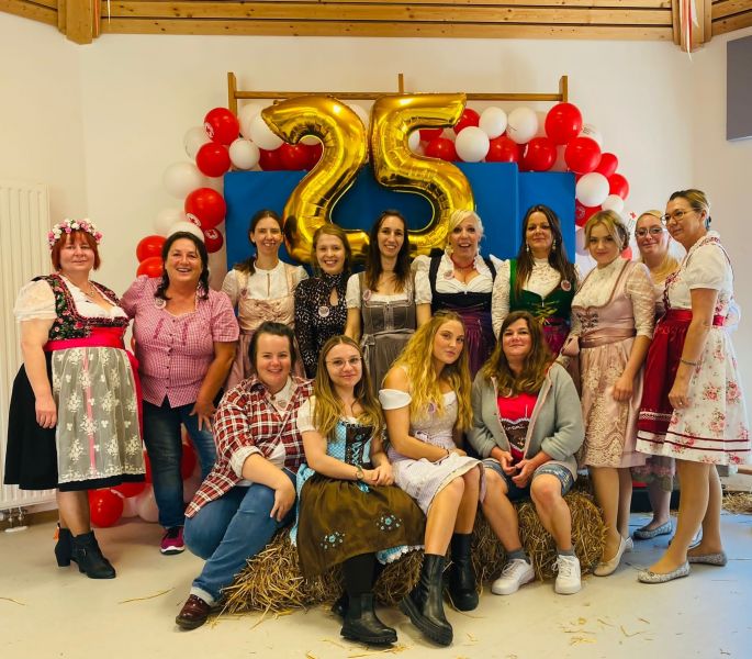 Wer am vergangenen Samstag die DRK-Kita Pfiffikus betreten wollte, der kam nicht einfach durch die Tür, sondern trat stilecht durch ein (nachgestelltes) Scheunentor. Innen erwartete die kleinen und großen Besucher*innen dann ein stimmungsvoller Mix aus Strohballen, rustikaler Deko und zünftiger Gemütlichkeit. Alles passend ausgerichtet auf das Motto der großen Jubiläumsfeier zum 25. Geburtstag: „Scheunen-Fest“.