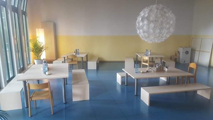 Die Idee hatte Kita-Leiterin Sandra Weniger, für die nötige Finanzierung sorgte der in Bönen ansässige BVB-Fanclub „Forza Borussia“ und die BVB-Stiftung „Leuchte Auf“. Die ehemalige Turnhalle der Kita wurde zum Kinderrestaurant umgebaut. Kleine Tische und Stühle und eine Buffettheke schmücken jetzt das Restaurant für die Kita-Kinder. Eine freundliche Farbgestaltung und Dekoration runden das neue Herzstück der Kita ab.