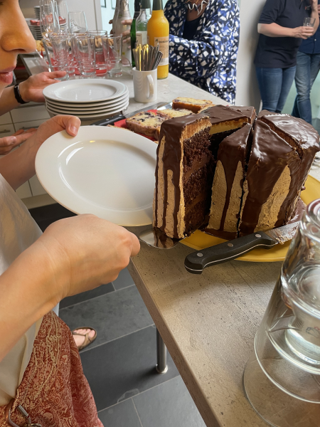 Um Annemarie Schmidt richtig zu verabschieden und ihr noch mal vor Augen zu halten, welches tolle Team sie verlässt, hat Kollegin Nina Schulze wieder ein Mal ihre Backkünste unter Beweis gestellt und einen Blaubeer-Zitronenkuchen und eine Schoko-Kaffee-Torte gebacken. Davon haben dann natürlich alle profitiert.