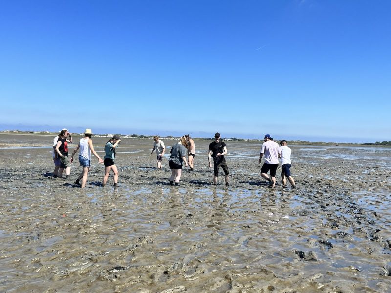 Neben diesen inhaltlichen Arbeiten nutzte die Gruppe aber natürlich auch die herrliche Nordseeumgebung für Ausflüge und Aktivitäten an der frischen Luft. Pflichtprogramm dabei: Die obligatorische Wattwanderung durchs UNESCO Weltkulturerbe Niedersächsisches Wattenmeer. Für die einen das erste Mal, für andere Erinnerung an Kindertage – genossen die Jugendlichen die gemeinsamen Erlebnisse, ehe zum Abschluss beim Gruppenabend zusammen gefeiert wurde.