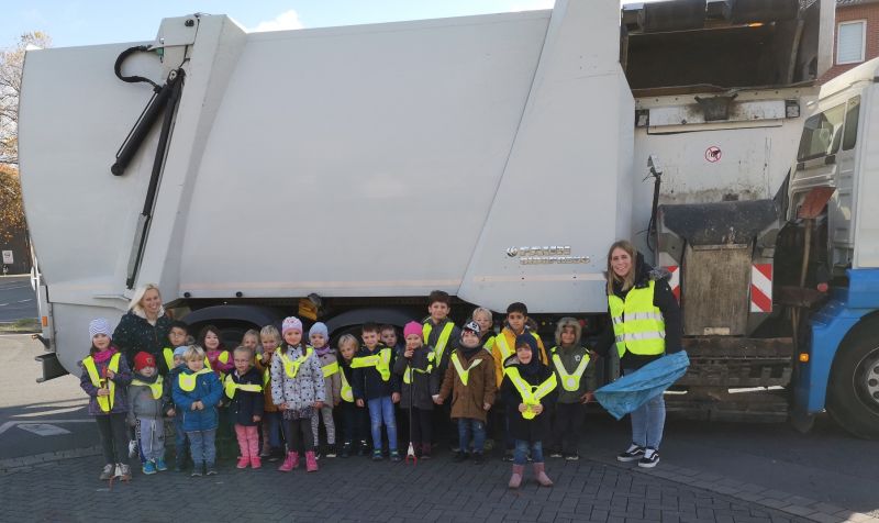 So drehte sich z.B. bei den Fröschen in den letzten zwei Monaten alles rund ums Thema Müll. Gemeinsam sortierten die kleinen Nachwuchs-Umweltschützer*innen im Gruppenraum, Plastik, Pappe & Co., und lernten die Eigenheiten der unterschiedlichen Wertstoffe kennen. Eigentlich geplant war im Zuge dessen auch ein Besuch vor Ort am Wertstoffhof der GWA. Da dieser coronabedingt leider ausfallen musste, gab‘s von der GWA als Ersatz verschiedene Lern- und Spielmaterialien für de Kita-Alltag. Und einen Ausflug machten die Frösche trotzdem. Ausgestattet mit Müllpickern und Eimern ging es in die Bönener Fußgängerzone, wo fleißig Müll gesammelt wurde.