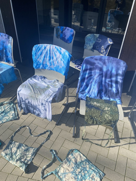 Doch das Highlight der ganzen Seminareinheit war wohl das Batiken mitgebrachter T-Shirts, Taschen, Hosen und vieler weiterer Kleidungsstücke. So konnte vielleicht schon etwas älterer, lange nicht mehr getragene Kleidung wieder aufgewertet und mit dem Gefühl von etwas Neuem wieder in den Schrank gehangen werden.