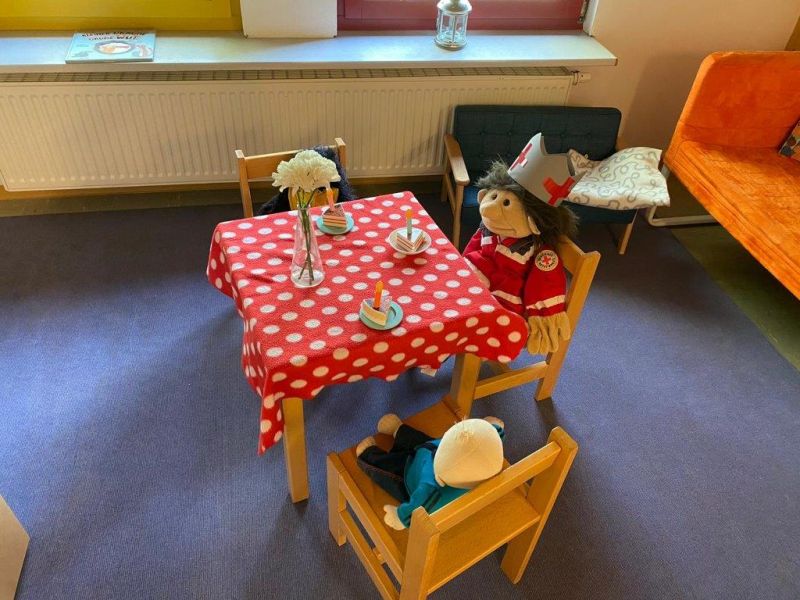 Neben all der Feierei geriet aber auch der eigentliche Anlass des Weltrotkreuztages nicht in den Hintergrund. „Uns war es wichtig, den Kindern spielerisch, aber ganz bewusst auch Informationen über das Rote Kreuz und seine Bedeutung zu vermitteln, erklärt Stephanie Kamp, Leiterin der Holzwickeder DRK-Kita Hokuspokus. Gerne nutzte sie dazu die Handpuppe „Henry“, die in vielen Kitas symbolisch für Gründer Henry Dunant steht.