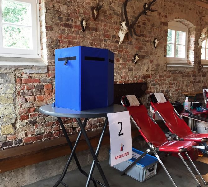 Nachdem der bisherige Spendeort – das evangelische Gemeindehaus – nicht mehr zu Verfügung stand, lud der Stockumer DRK-Ortsvereinsvorsitzende Georg Laurenz sein ehrenamtliches Helferteam und den Blutspendedienst West kurzerhand zu sich nach hause – auf den Hof Schulze-Blasum – ein. Wo sonst Spargel und Brechbohnen verkauft werden, waren nun Liegen und Behandlungsecken eingerichtet und sorgten für eine außergewöhnliche Umgebung, die in Erinnerung bleiben dürfte.