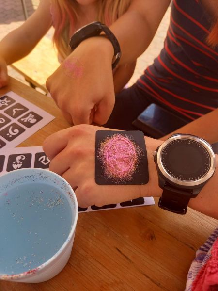Einen ersten Vorgeschmack darauf bot der verkaufsoffene Sontag in der Selmer Innenstadt Ende September. In Kooperation mit dem Spielzeuggeschäft „Spielen und Träumen“ konnten sich alle Kinder oder auch erwachsenen am Stand der Kita mit Glitzertattoos schmücken und schminken lassen. Ein Angebot, dass rege angenommen wurde und gerne wiederholt werden soll.
