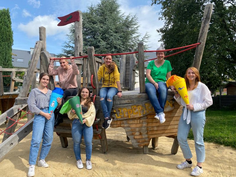 Diese Erkenntnis hat auch Janine Kusche schon gemacht und kann damit nach zwei Jahren rein schulischer Ausbildung endlich auch praktisch genießen, warum sie sich für den Beruf der Erzieher*in entschieden hat. Denn anders als ihre Kollegin Marie Drakula, die als vierte im Bunde in diesem Jahr ihre praxisintegrierte Ausbildung bei den Lippepiraten gestartet hat, nutzt sie noch den klassischen Ausbildungsweg. Dieser besteht aus zwei reinen Schuljahren mit kurzen Praktika, sowie einem anschließenden Anerkennungsjahr in einer Kita.