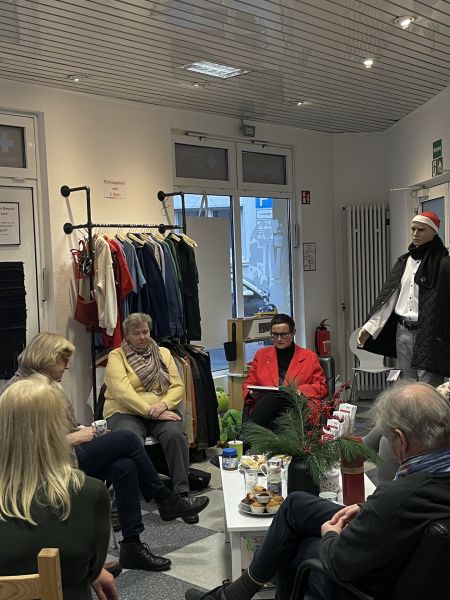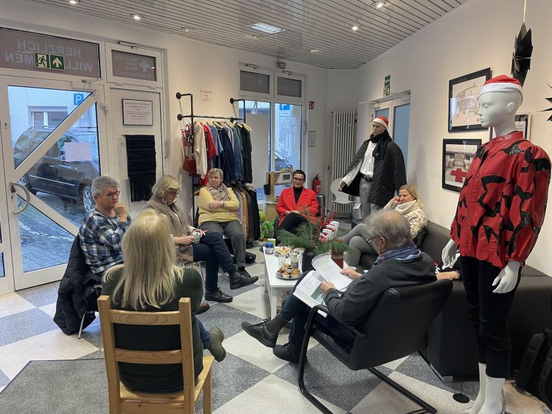 Gemeinsam mit Kunden, ehrenamtlichen- und hauptamtlichen Mitarbeiter*innen des DRK Kreisverbandes Unna verbrachte eine kleine Runde bei Kaffee, Tee, Plätzchen UND Muffins einen gemütlichen Nachmittag im Lieblingsstücke Kleiderladen. Unser Präsident Michael Makiolla und unsere Vorständin Christine Scholl beehrten uns mit spannenden Astrid-Lindgren-Weihnachtsgeschichten von Lotta und Tomte Tummetott. Sie ließen allen Beteiligten noch einmal Kind sein und so führten die Gespräche vom Alltagsstress bis hin zu Traditionen aus der Kindheit.
