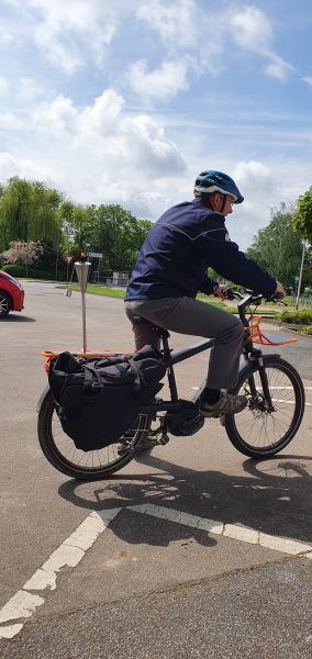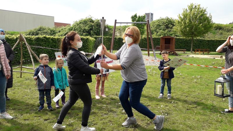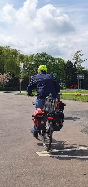 Von Unna aus wurde die Fackel mit dem Schlitten nach Bönen transportiert, wo bereits begeisterte Kinder in der Kita Puzzlekiste warteten und die Fackel weiter zur Kita Nordlicht brachten. Von dort aus ging es mit dem Bollerwagen zum Ortsverein Bönen und anschließend nach Bergkamen. Ab hier wurde es dann sportlich: Die Fackel wurde weiter mit dem Fahrrad nach Holzwickede transportiert, machte dort auch einen Stopp am Perthes-Haus, wo der Ortsverein Holzwickede regelmäßig die Corona-Testungen für Besucher übernimmt, und wurde anschließend noch zur Kreisgeschäftsstelle für ein kurzes Abschiedsfoto gebracht.