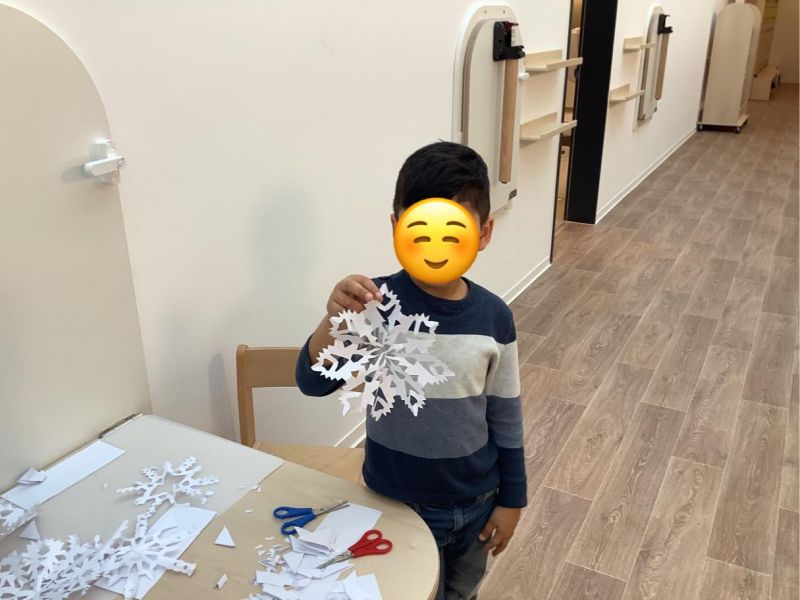 Dort wird passend zum Winter nämlich gerade schon fleißig neue Deko gebastelt. Und selbstgemachter Schnee aus Styroporkügelchen & Co., oder filigran ausgeschnittene Schneeflocken und Tiermotive für die Fenster scheinen – wenn man den Foto glauben darf – für alles andere als Winterblues bei den Kleinsten zu sorgen.