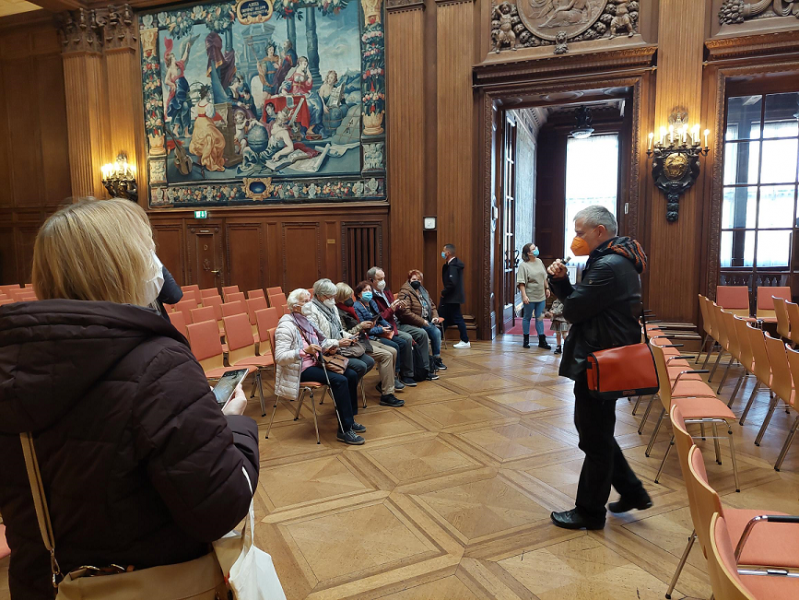 Um 9 Uhr ging es los und nach einer einstündigen Fahrt lag zwischen dem Ausflugsziel und den Teilnehmer*innen nur noch die Tür des Reisebusses. So kam die Gruppe an der Villa Hügel an und konnte sofort in das Leben der Familie Kruppe eintauchen. Nach einer spannenden Erkundungstour durch die Villa hatten natürlich alle Hunger. Um sich vor der Abreise nochmal zu Stärken ging es zum Mittagessen also in die Südtiroler Stuben am Baldeneysee.