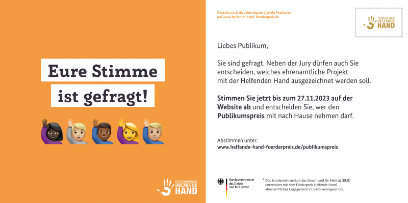 Nun wurde der Jahresendspurt tatsächlich sogar für den Förderpreis Helfende Hand nominiert und jetzt seid ihr gefragt: Stimmt bis zum 27. November für euer Lieblingsprojekt ab! Wir freuen uns über Ihre Unterstützung! Hier können Sie direkt abstimmen!