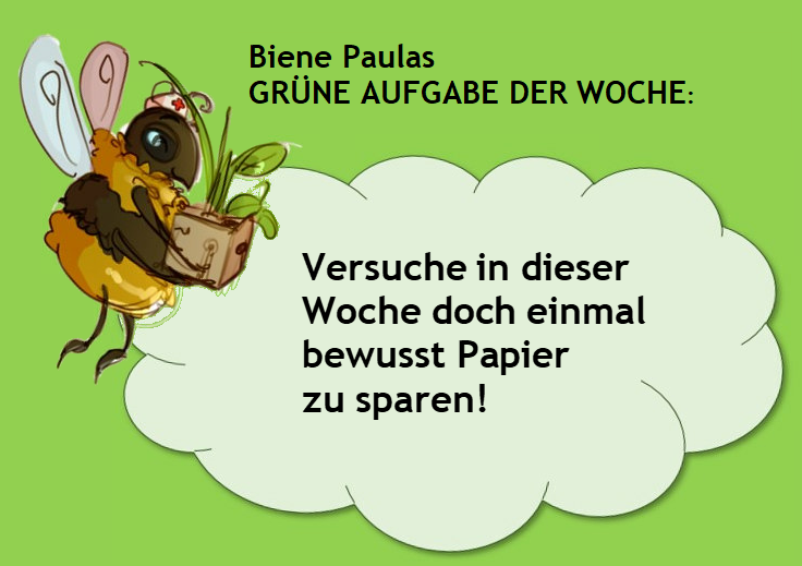 Herausgekommen ist die Idee, alle Mitarbeitenden regelmäßig mit kleinen Anregungen zum Umdenken anzuregen und durch gemeinsame Aktionen zum Mitmachen zu motivieren. Deshalb gibt es ab sofort jeden Montag die „Grüne Aufgabe der Woche“.