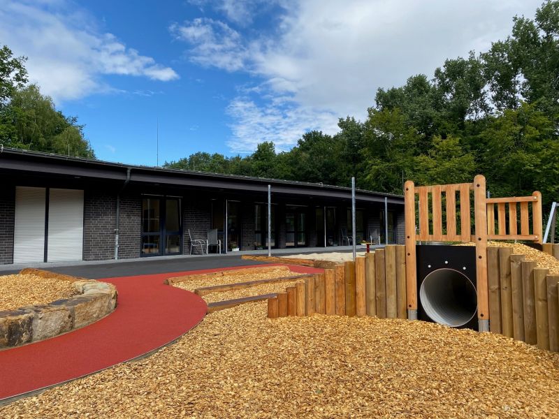 „Dieses neue Gebäude bietet die Bühne, der umliegende Wald die wunderschöne Kulisse, aber die Hauptdarsteller sind natürlich die Kinder und Erzieher*innen“. Besser als Architekt Wolf-Eberhard Benthaus vom gleichnamigen Architekturbüro hätte man kaum beschreiben können, wie gut sich das neue Gebäude der DRK-Kita Entdeckerland in sein naturnahes Umfeld einfügt. Darüber waren sich bei der offiziellen Eröffnungsfeier am Freitag Vormittag wohl alle Gäste einig.