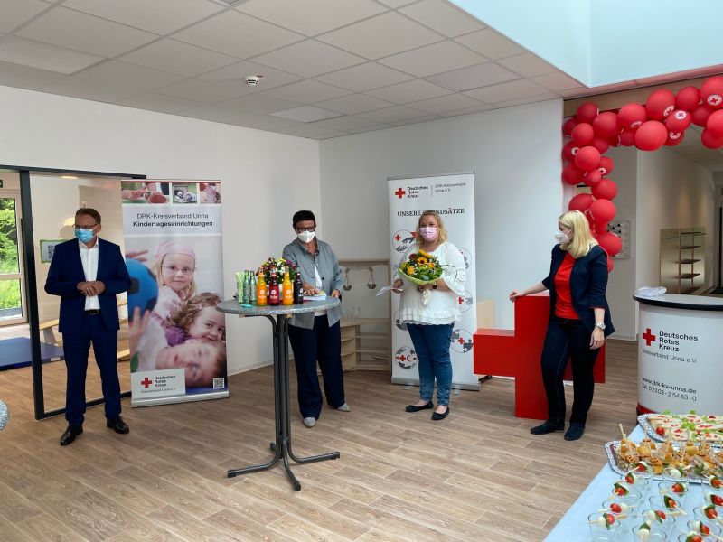 Von den zahlreichen Handwerker*innen der unterschiedlichsten Gewerke, dessen letzte Kolleg*innen bis Minuten vor der Eröffnung noch den allerletzten Feinschliff erledigt hatten, über die Verantwortlichen bei der Stadtverwaltung um Bürgermeister Thomas Orlowski und Amtsleiter Wolfgang Strickstrock, das Architekturbüro Benthaus, die Investorenfamilie Reus, die sich immer wieder auf die spezifischen Bedürfnisse in der Kindertagesbetreuung einließ und nicht zuletzt natürlich auch das engagierte Team des DRK-Kreisverbandes und der Kita selbst. Eine rundum gelungene Teamleistung!“, bei der jeder einzelne seinen ganz persönlichen Beitrag zum Gelingen des großen Ganzen geleistet hat.