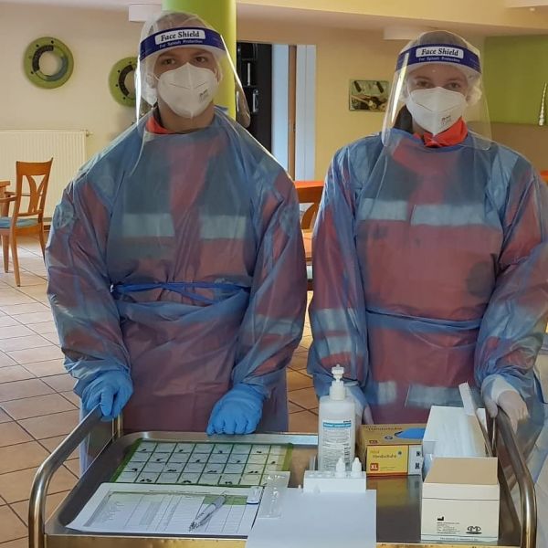 „Die Organisation und die Betreuung unserer Helfer*innen durch die Einrichtung war gut“, ist Ralf Quietzsch aus Fröndenberg zufrieden mit dem bisherigen Einsatz. „Unsere Ehrenamtlichen wurden vorab selbst getestet und erst nach dem negativen Ergebnis mit Schutzkleidung ausgestattet und in den Gebrauch des verwendeten Schnelltest eingewiesen.“