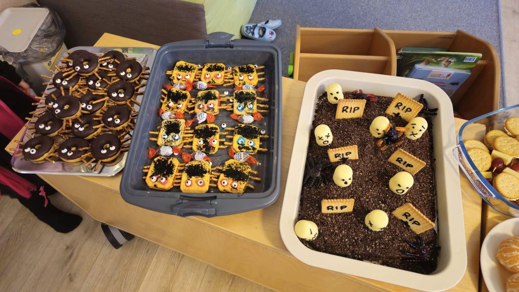 Abgerundet wurde das Halloween-Erlebnis mit liebevoll vorbereiteten Snacks und Dekorationen. Herzlichen Dank an die engagierten Kita-Teams, die Halloween für die Kinder so besonders gemacht haben!