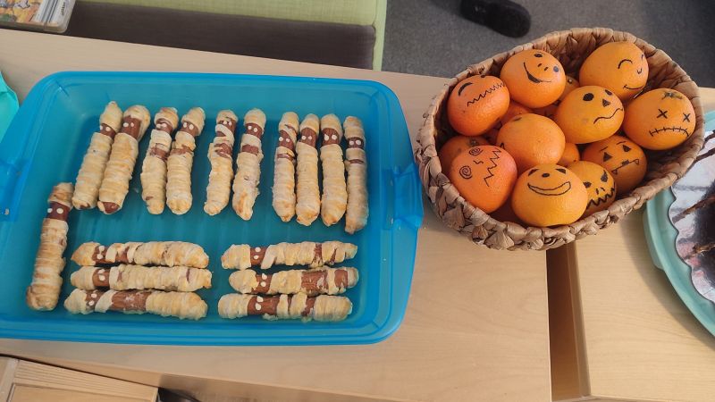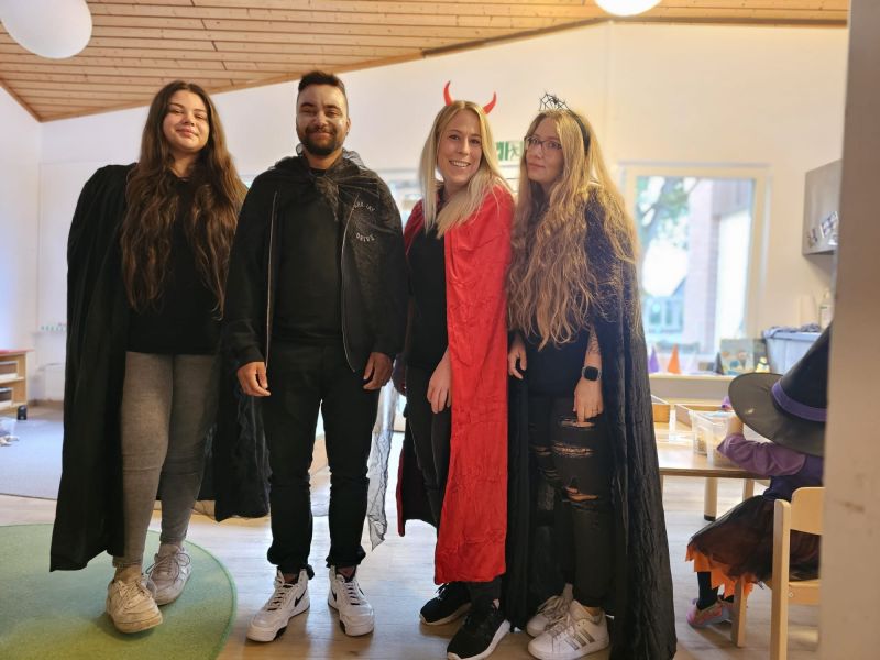 Selbstverständlich duften die Verkleidungen auch nicht fehlen und so ließen sich vergangene Woche einige Hexen und Teufel in unseren Kitas blicken. Um sich von dem Schreck der von der Decke hängenden Fledermaus wieder zu erholen, standen stets einige Snacks bereit, die das Halloween Fest perfekt machten!