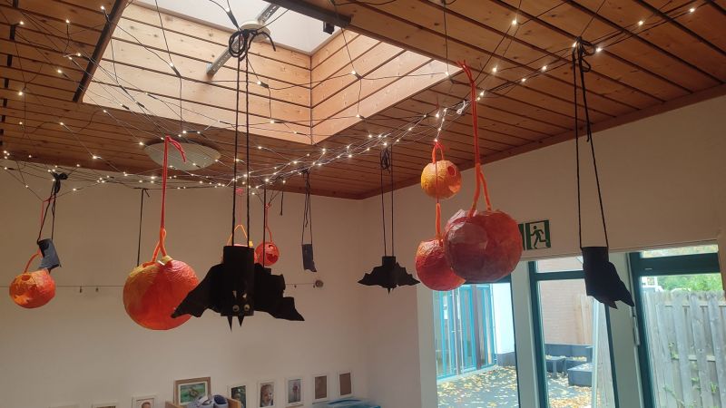 Kürbis-Luftballons, Hexenhüte, Grusel-Mandarinen oder Spinnenkuchen. – Unsere Kitas Teams haben sich dieses Jahr wieder ordentlich ins Zeug gelegt und den kleinen Geistern in den verschiedenen Einrichtungen ein schaurig schönes Halloween fest bereitet.