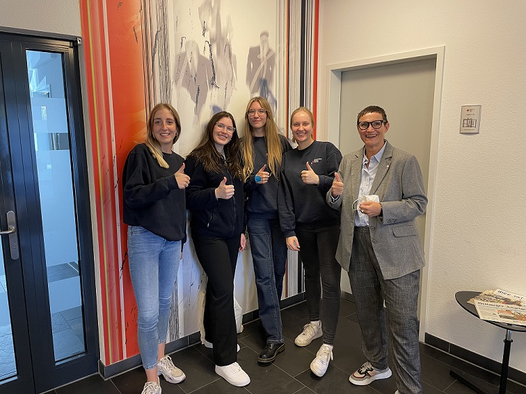 Gleiches gilt unserer DRK-Kreisgeschäftsführerin Christine Scholl: Nachdem es natürlich schon ein kurzes Kennenlernen gab, war es beiden Parteien wichtig, dieses bei Kaffee und einem leckeren Stück Kuchen zu vertiefen. So kamen die sechs vor Kurzem also noch einmal zusammen: „Es war mir einfach wichtig, dass die Freiwilligen sich wohl und willkommen fühlen. Außerdem war es sehr interessant, etwas mehr über sie und ihre Motivation hinter dem FSJ zu erfahren.“, erzählt Christine Scholl voller Begeisterung über das Kennenlernen mit Rena Knolle, Finja Röber, Renée Hagge und Hanna Hagenhoff. Urlaubsbedingt konnte unser fünfter FSJler Jannik Kempel den Termin leider nicht wahrnehmen, aber die Mädels werden ihn sicherlich mit allen relevanten Informationen versorgen.