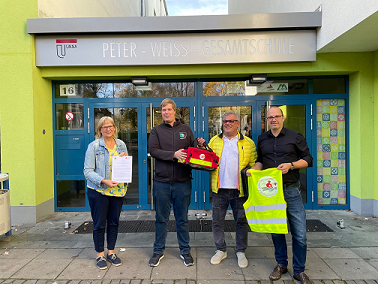 Genau für solche Fälle hat die Peter-Weiß-Gesamtschule nun in Kooperation mit dem Jugendrotkreuz (JRK) einen „Schulsanitätsdienst“ gegründet. In einer wöchentlichen, zweistündigen AG im Rahmen der Ganztagsbetreuung lernen hierzu insgesamt 10 Schüler*innen unter Anleitung ihres Lehrers Herrn Bagheri die Grundlagen der Ersten Hilfe.