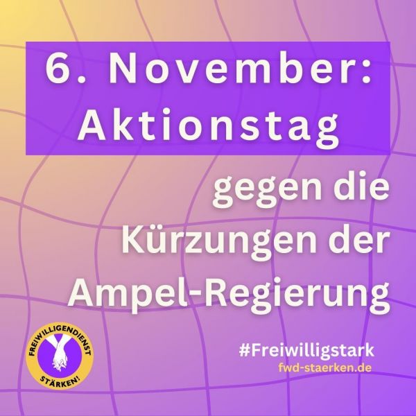 Die Bundesregierung hatte im Juli einen Haushaltsentwurf für 2024 vorgelegt, der bei den Freiwilligendiensten Einsparungen im Umfang von 78 Millionen Euro vorsieht. Dies entspricht einer prozentualen Kürzung der Mittel von rund 24 Prozent.