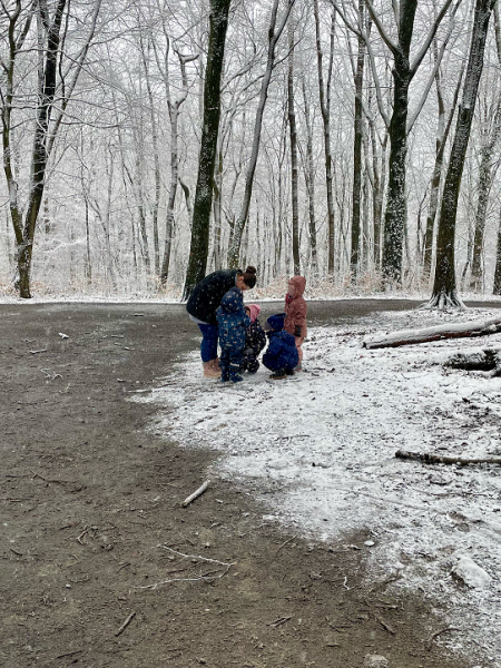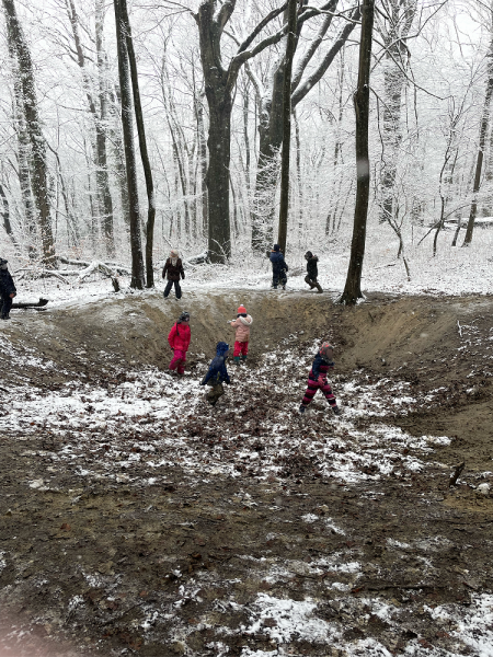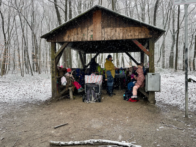 Am Mittwoch hatte die Gruppe das große Glück, den Tag im Schnee zu verbringen: Die einzelnen Flocken auf der Zunge zergehen lassen, Schneebälle formen und beobachten, wie der pudrige Schnee von den Ästen fällt. – Ein kleines Winter Wonderland eben.
