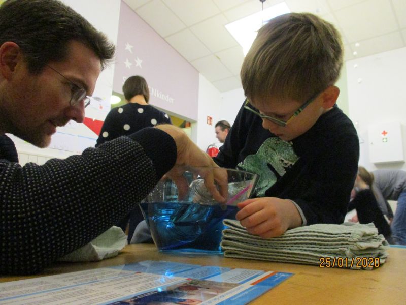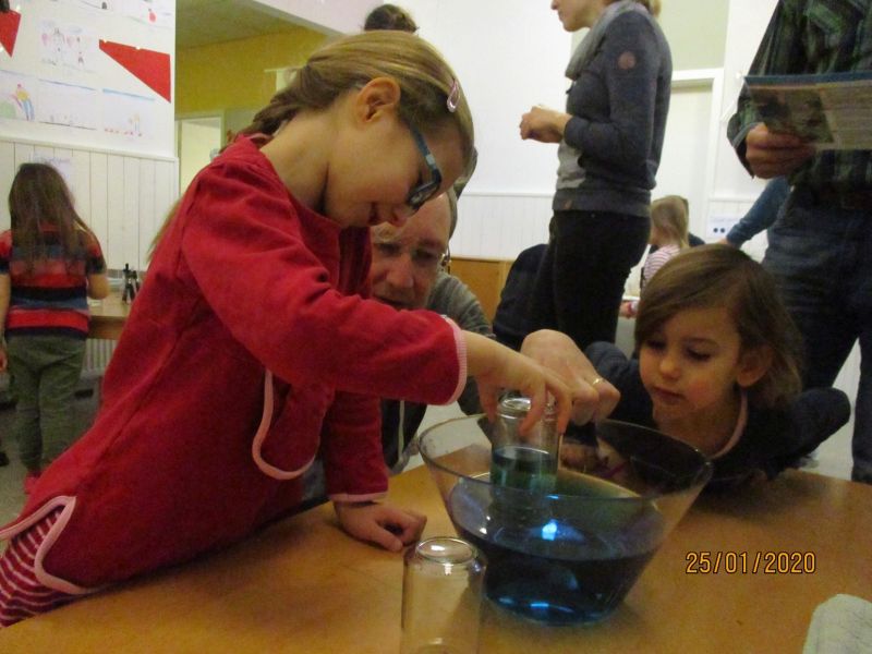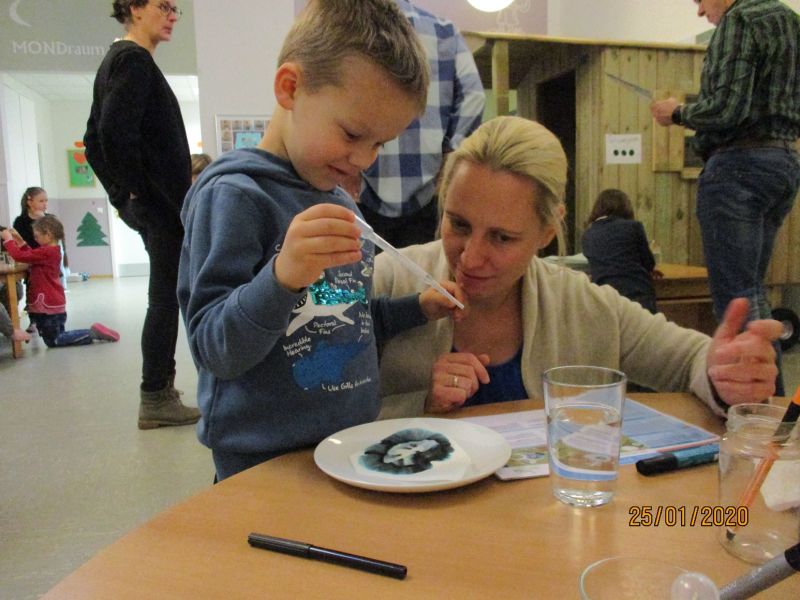 Der Forscher-Vormittag in der Kita Pfiffikus ist eine ausgewiesene Erwachsenen-Kind-Aktion, die darauf ausgelegt ist, die Beziehung zwischen Kita-Kindern und ihren erwachsenen Begleitpersonen zu stärken, indem die jeweiligen Experimente nur von beiden „Partnern“ gemeinsam in Zusammenarbeit erledigt werden können. Und das taten die zahlreichen kleinen und großen Forscher*innen am vergangenen Samstag mit großer Begeisterung und viel Spaß.