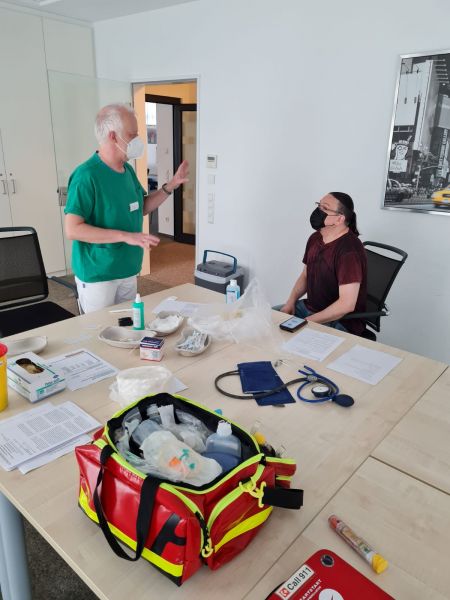 Umgesetzt wurde die Aktion von Betriebsarzt Dr. Schäfer vom Gesundheitsteam Dortmund. Ganz unkompliziert hatte er – tatkräftig unterstützt durch die DRK-Mitarbeitenden vor Ort – eine kleine Impfstraße eingerichtet. Dort informierte er jeden einzelnen zuerst und setzte dann die Impfung, ehe die frisch Geimpften eine viertel Stunde lang von Erste Hilfe-Ausbilder Mario Bergermann „überwacht“ wurden, während die Verwaltung zuvor bereits die Daten der Kolleg*innen für das RKI aufgenommen hatte. Perfektes Teamwork also!