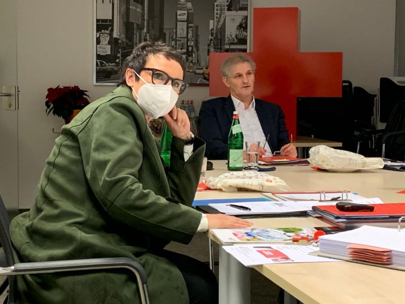 „Hätte“ wohlgemerkt, denn die stark gestiegenen Infektionszahlen der letzten Wochen und der aktuell geltende „Teil-Lockdown“ machten dem Planungsteam erneut einen Strich durch die Rechnung und sorgten dafür, dass innerhalb kürzester Zeit Plan C entwickelt wurde: Eine Infoveranstaltung in Form eines Web-Meetings mit anschließendem Umlaufbeschlussverfahren. Ganz konkret heißt das, dass sich alle Teilnehmer*innen am vergangenen Mittwoch pünktlich um 19 Uhr zu einer Videokonferenz zuschalteten. Geleitet wurde diese vom Vorstandsvorsitzenden Michael Makiolla, der sich gemeinsam mit seinem Stellvertreter Norbert Hahn, Schatzmeister Peter Zahmel und der Kreisgeschäftsführerin Christine Scholl - unter Einhaltung der Abstandsregelungen und mit Masken – im größten Besprechungsraum der Geschäftsstelle positioniert hatte.