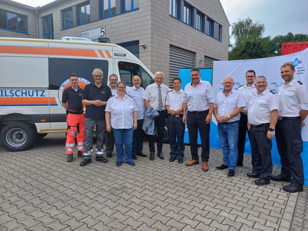 DRK-Kreisverbandspräsident Michael Makiolla: „Das DRK ist ein wichtiger und verlässlicher Partner vor Ort, wenn es um Zivilschutz und Katastrophenhilfe geht. Wir halten das Know-how gemeinsam mit vielen weiteren Hilfsorganisationen bereit und sind einsatzfähig, wenn es ernst wird. Der neue Krankentransportwagen ist bei uns in guten Händen.“