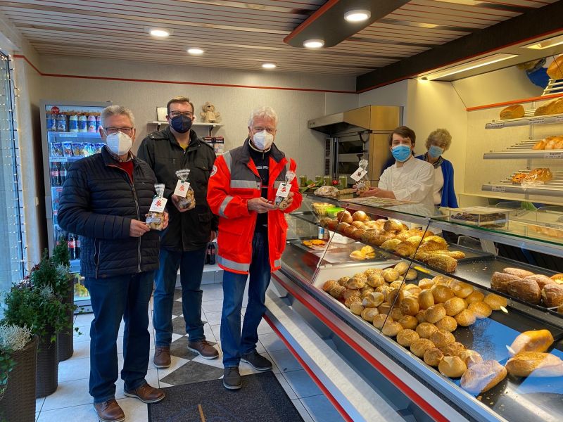 Doch dieser Einsatz sei „doch selbstverständlich“, betonte Stefan Albert von der gleichnamigen Bönener Traditionsbäckerei, als er vom zweiten Vorsitzenden des DRK-Kreisverbands Unna, Norbert Hahn, sowie Karl-Heinz Pelz und Timo Beckschäfer aus dem Vorstand des DRK-Ortsvereins Bönen in seiner Filiale besucht wurde. Schließlich lässt sich so die Rotkreuzarbeit unterstützen und gleichzeitig den Bürgerinnen und Bürgern ein wenig die Adventszeit versüßen.
