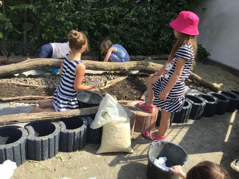 „Um die Notbetriebsphase sinnvoll zu nutzen, haben wir unsere Eltern angeschrieben und um Spenden für den Garten gebeten. Von Kies und Sand bis zu Rindenmulch und Holz kam da schnell vieles zusammen, mit dem unsere Erzieher*innen und die anwesenden Kinder den Garten ordentlich aufhübschen konnten“, freut sich Nicole Schröer über zahlreiche Spenden und das tolle Ergebnis. Besonders schön: „Viele der Maßnahmen waren Ideen oder Wünsche der Kinder, die im Zuge der Partizipation aufgegriffen und nun umgesetzt werden konnten.“