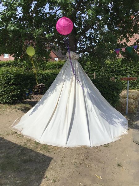 Wer nach all dem Spielen und Toben dann ein kleines Päuschen braucht, findet hierfür im neuen Tippi einen schönen Rückzugsort, in dem man es sich mit Kissen und Decken so richtig gemütlich machen kann.