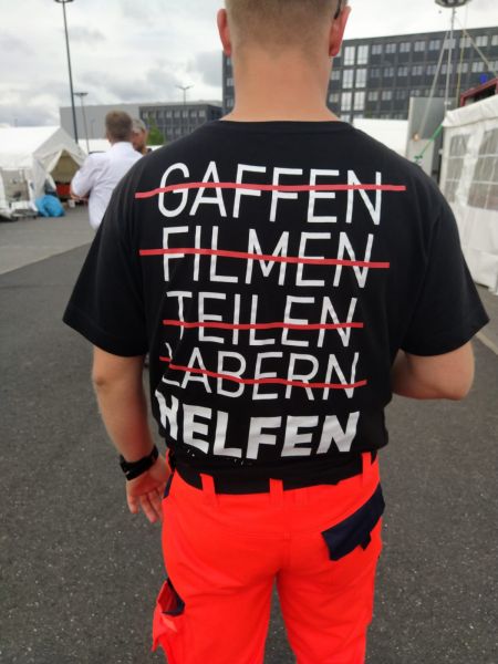 Und nicht nur das DRK ist vor Ortengagiert bei der Sache, wie Martin Kolöchter berichtete. „Das bürgerschaftliche Engagement ist beeindruckend! Innerhalb der Zeltstadt haben sich die Menschen mittlerweile toll organisiert. Und auch die Zusammenarbeit unter den Hilfsorganisationen klappt wirklich sehr gut“, berichtet Kolöchter und berichtet vom engen miteinander zwischen Feuerwehr, THW und DRK-Einheiten aus ganz Deutschland. „Unsere Aufgaben haben wir z.B. von Einsatzkräften des Bayrischen Roten Kreuzes übernommen, als wir am Mittwoch hier eintrafen.“