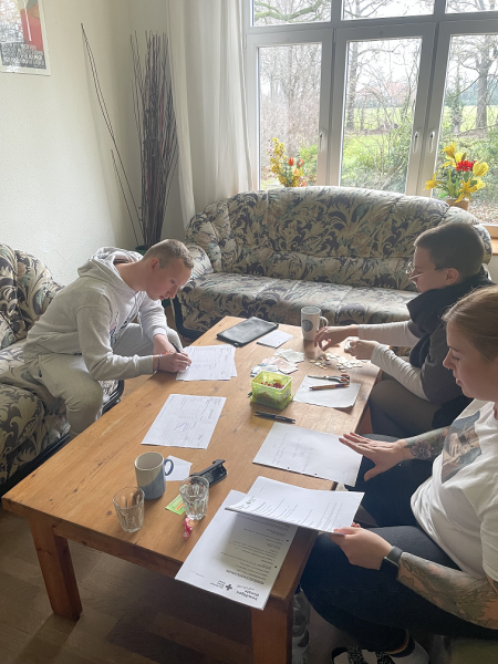 Im Anschluss standen dann die ersten inhaltlichen Programmpunkte auf der Agenda: Das Reflektieren der vergangenen Wochen in den jeweiligen Einsatzstellen, das Teamquadrat, welches die einzelnen Teilnehmer*innen über das Wohlbefinden der anderen innerhalb der Gruppe informiert sowie das Führen weiterer Sprechstunden mit neuen Freiwilligen. Und ein kleines Warm Up – oder wie unsere Bildungsreferent*innen oder Teamer*innen sagen würden – ein kleines „WUP“, um wieder in die Gruppendynamik reinzukommen, dufte natürlich auch nicht fehlen.