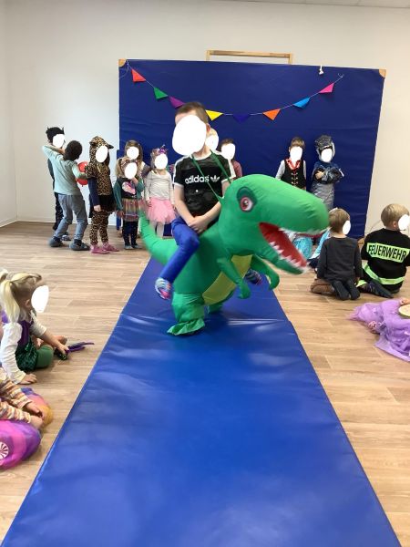 Die kleinen Jecken hatten sich kunterbunte Kostüme für den Rosenmontag ausgesucht und feierten ausgelassen. Feen und Superheldinnen tanzten mit Ninjas und Drachen um die Wette. Prinzessinnen teilten sich das Leckereien-Buffet mit Feuerwehrkräften und Polizist*innen.