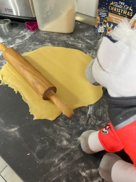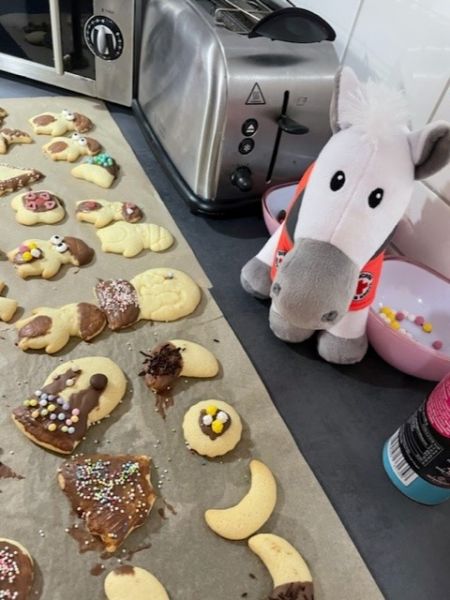 SofHi wünscht besinnliche Feiertage: Ein Einblick in die Weihnachtsbäckerei unseres kleinen weißen DRK-Stoffpferdchens