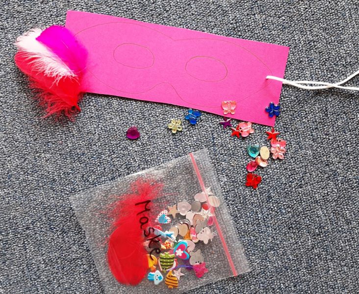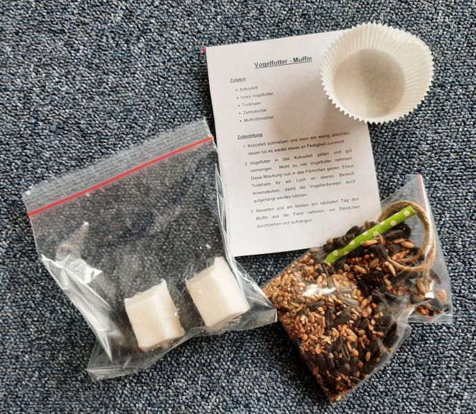 Nicht zum ersten Mal gibt’s für jedes Kind eine liebevoll zusammengestellt „To Go“-Tüte, die alle Eltern ab morgen an der Kita-Tür abholen können. Darin verstecken sich u.a. – passend zu den bevorstehenden Karnevalstagen – eine Maske inkl. Verschönerungsmaterial zum selber Basteln und Anleitung und Zutaten zum Backen eines Vogelfutter-Muffins für den heimischen Garten.