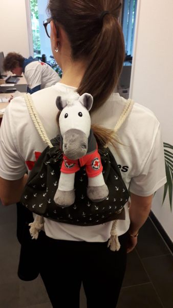 Verstärkung erhielten die DRK-Läufer übrigens von SoFhi – dem kleinen kuscheligen Maskottchen des Projektes „SofHi – Soforthilfe für benachteiligte Kinder“, für das der DRK-Kreisverband in diesem Jahr die Patenschaft übernehmen durfte. Und auch, wenn das kleine Pferdchen selbst nicht ganz so schnell mitgaloppieren konnte, sorgte es im Rucksack doch für viel Gesprächsstoff und Aufmerksamkeit für das Projekt.