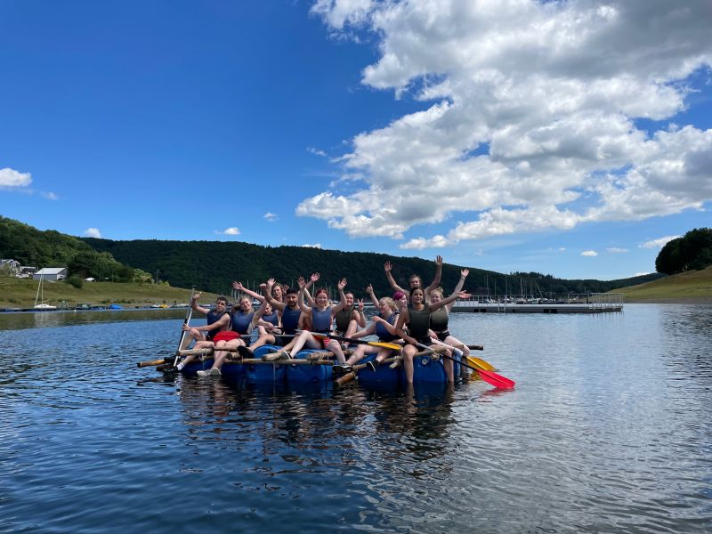 Teambuilding auf dem Wasser: FSJler*innen bauen Floße auf dem Rursee