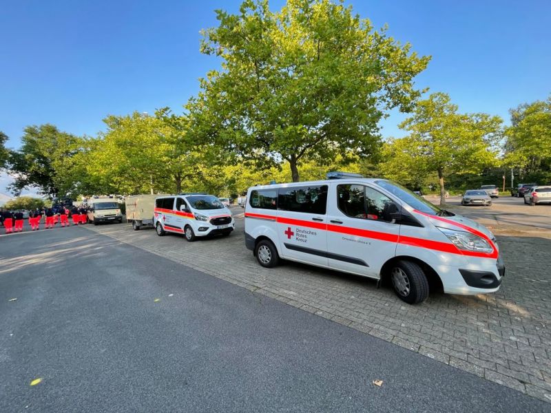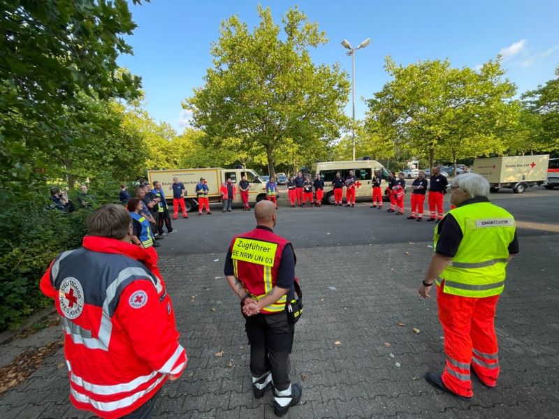 Damit genau dass der Fall ist, und jede/r unserer ehrenamtlichen Einsatzkräfte im Notfall zügig, sicher und bedacht handeln kann, heißt es auch im Alltag, regelmäßig zu üben. Hierfür trafen sich am vergangenen Montag – nach vielen digitalen Übungs- und Fortbildungsabenden – erstmals wieder alle ehrenamtlichen Mitglieder der Einsatzeinheit NRW UN 03 zu einem praktischen Übungsabend. Treffpunkt für die Rotkreuzler der Ortsvereine Unna, Holzwickede, Schwerte und Fröndenberg war der Parkplatz der ehemaligen Unnaer Eissporthalle.