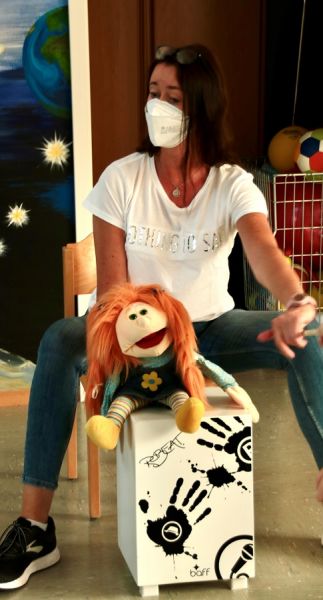 Hierzu verbindet die Pädagogin Wörter mit Bildern und Musik, lässt die Kinder z.B. über „Bodypercussion“ ihren eigenen Körper als Instrument erleben, zu Musik malen oder macht mit ihnen kleine Rate-Spiele zur Körpersprache. Dadurch werden Sprachrhythmen und Sprachklänge erarbeiten und grundlegende Elemente der Sprache, wie Silbentrennung, Sprachverständnis und Sprachgehör können durch den Klang der eigenen Trommeln besser verstanden werden. Neben der Förderung des Sprachgefühls achtet Alexandra Gerres dabei besonders darauf, dass die Kinder durch die Stunden auch in ihren Persönlichkeiten gestärkt werden.