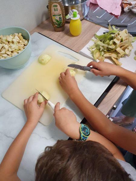 Doch für den süßen Zahn gab es selbstverständlich auch etwas. Dank einer großzügigen Eltern-Spende konnte eine andere Gruppe selbst Apfelmus herstellen und sich somit ebenfalls auf den kommenden Herbst einstellen.