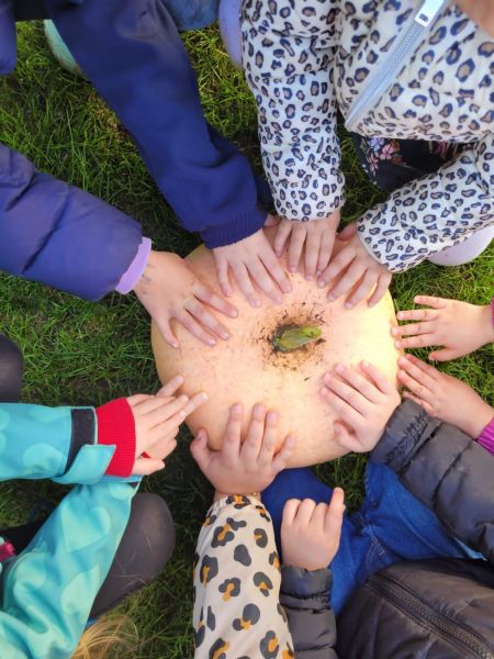 Während die einen sich lieber im Wald auf das nächste Abenteuer gefasst machten, durften einige Kids den Geschmack des Herbsts kosten und wurden in den Kita Küchen zu wahren Meisterköchen und -köchinnen. So wurde zum Beispiel eine köstliche Kürbissuppe mit Kürbissen aus dem eigenen Garten gezaubert. – Dass diese Suppe geschmacklich also nur gut werden konnte, war somit eigentlich schon im Vorhinein klar.