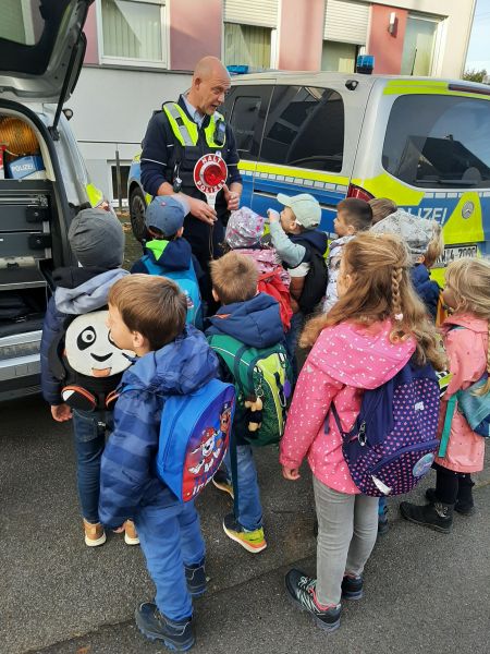 Dort wurde die aufgeregte Gruppe bereits von den zwei lokalen Fröndenberger Bezirksbeamten Claudia Preker und Markus Droste erwartet, die sich für die kleinen Nachwuchs-Polizist*innen ein spannendes Programm ausgedacht hatten.