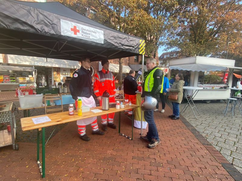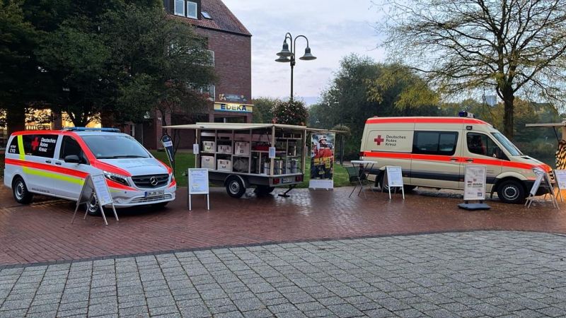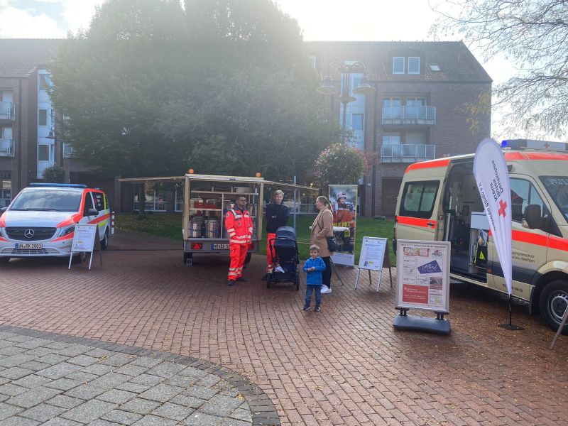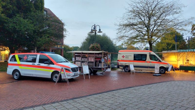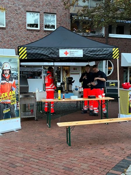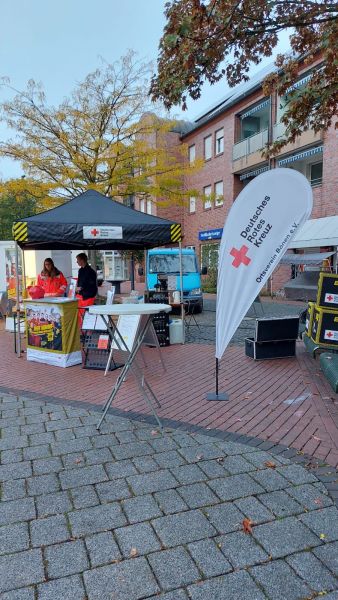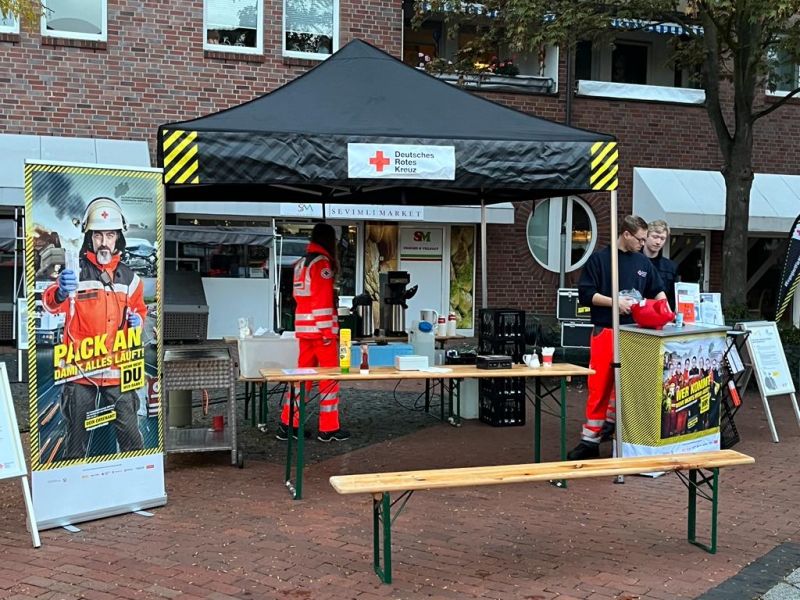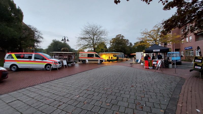 Beantwortet wurden dabei ganz praktische Fragen, wie: Wie erhält man ohne Handy, TV & Co. aktuelle Infos? Oder: Wie kann ich mich ernähren, wen Kühlschrank und Herd ausfallen und woher bekomme ich sauberes Trinkwasser? Zum großen Interesse der Bönener*innen, die gerne und zahlreich von den Angeboten der Rotkreuzler*innen Gebrauch machten und sich – auch angesichts der derzeitigen Situation auf den Energiemärkten – engagiert mit dem Szenario eines Blackouts in Bönen auseinandersetzten.