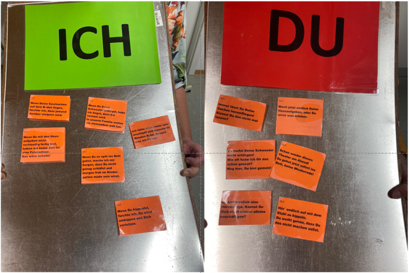 Insgesamt 20 interessierte Erziehungsberechtigte waren der Einladung von Kita-Leiterin Stefanie Kamp gefolgt und durften sich über einen spannenden Vortrag mit zahlreichen Praxisbeispielen freuen. So zeigte Referentin Angela Stauten-Eberhardt vier Kurzfilme mit exemplarischen Situationen und erarbeitete anhand dessen gemeinsam mit den Zuhörer*innen mögliche Konfliktlösungen. Dabei erläuterte sie, warum Eltern ihre Kinder in manchen Situationen – wie z.B. während des Spielens – schlechter ansprechen bzw. erreichen können und mit welchen Tricks es trotzdem gelingen kann. Als hilfreiche Lösungsstrategien wurden im Anschluss in kleinen Gruppen das Aktive Zuhören und die Formulierung von Ich-Botschaften eingeübt.