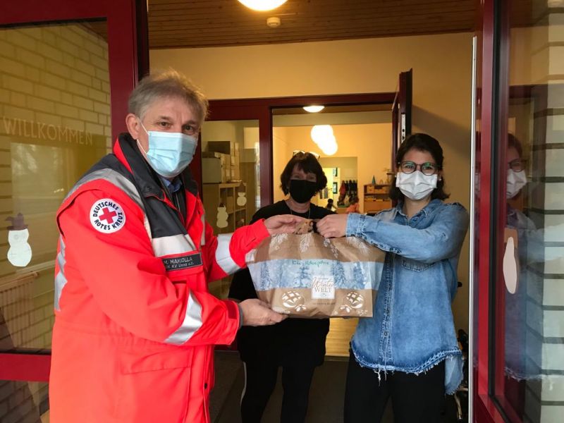 Dafür ging es von der Geschäftsstelle aus nach und nach in alle Kitas, wo die Pakete – coronakonform – meist nur vor der Tür oder im Eingangsbereich übergeben und von den Erzieher*innen vor Ort fröhlich in Empfang genommen wurden. Und auch unsere sonstigen Außenstellen, wie unser Freiwilligendienste-Büro in OWL und unser Kleiderladen werden in den nächsten Tagen noch mit leckeren Weihnachtsgrüßen versorgt.