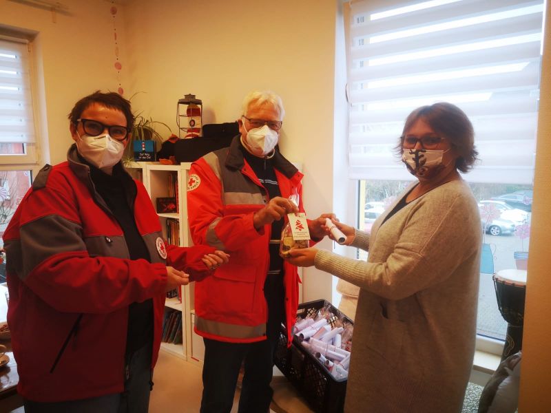 Ihre Mission: Allen Mitarbeiterinnen und Mitarbeitern des DRK-Kreisverbands Unna frohe Weihnachten zu wünschen und ihnen mit einer Tüte voller leckerer Rotkreuzchenkekse die letzten Adventstage versüßen.